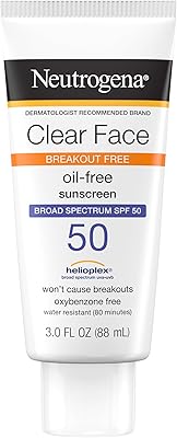 Neutrogena Clear Face Sunscreen Lotion for Acne-Prone Skin, Broad Spectrum SPF 50, Sunscreen for Face & Oily Skin, Oil-,Fragrance- & Oxybenzone-Free, Water Resistant, Matte, Unscented, 3 Fl Oz